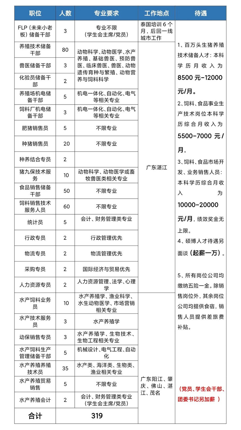 正大集团农牧食品企业将于2021年10月20日晚上7在第三教学楼202点举办春季校园专场招聘会。